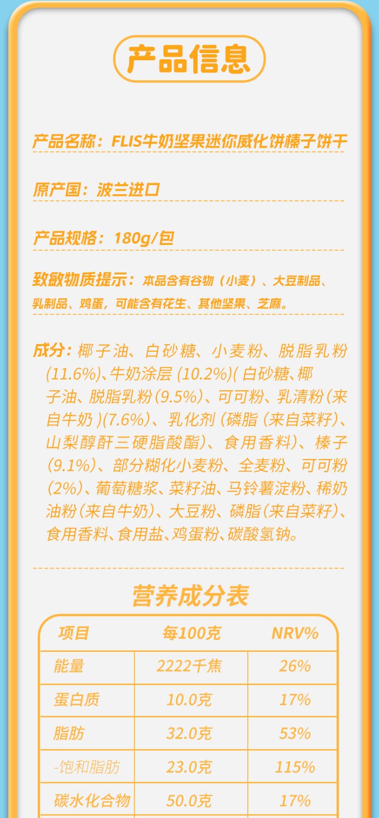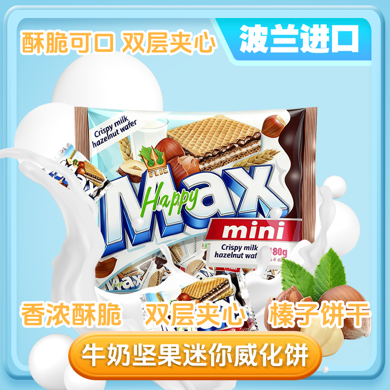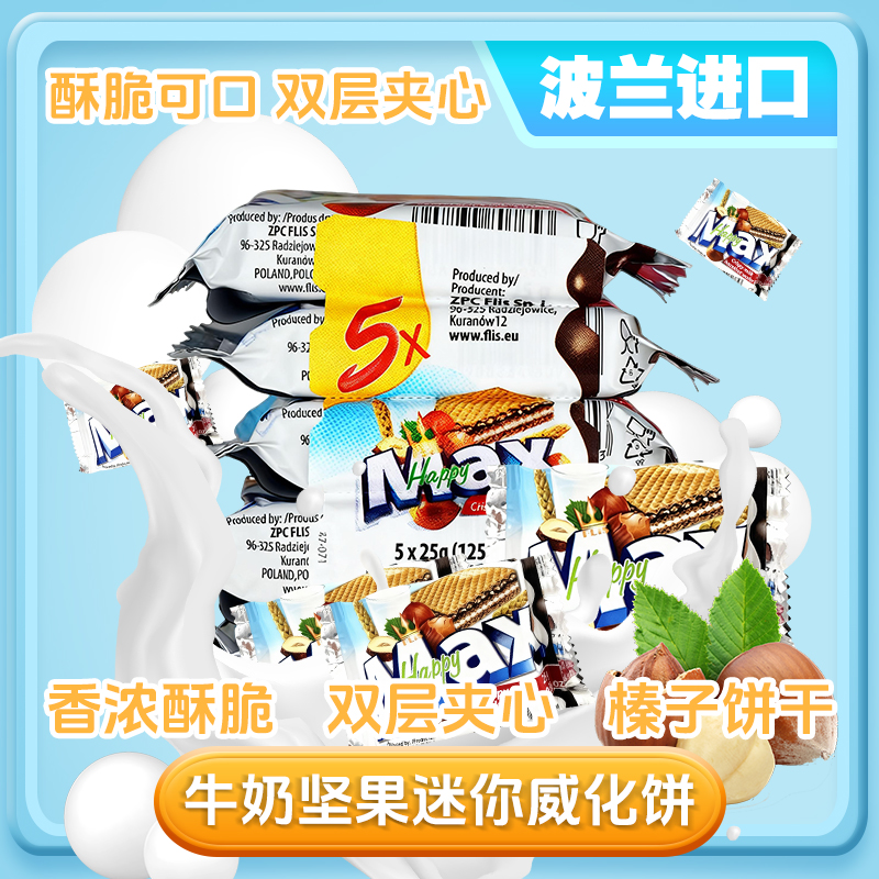 商品名称:波兰进口FLIS牛奶坚果迷你威化饼榛子饼干 180g