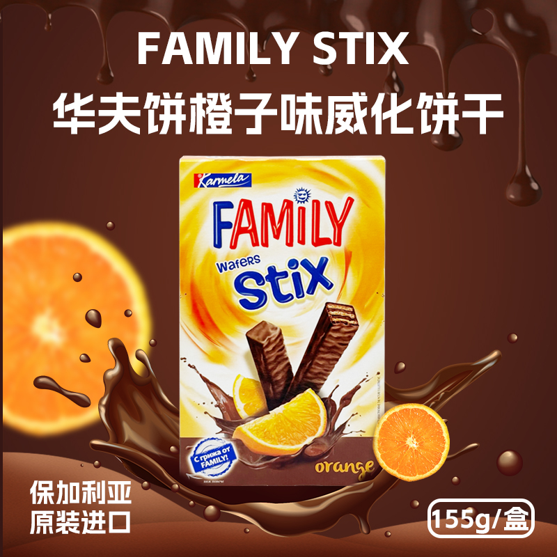 保加利亚进口Family Stix 华夫饼橙子味威化饼干 155g