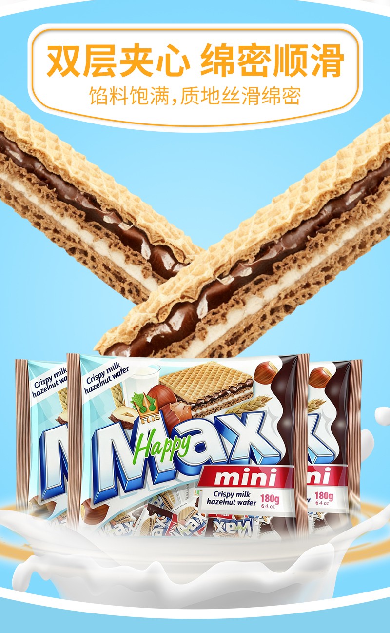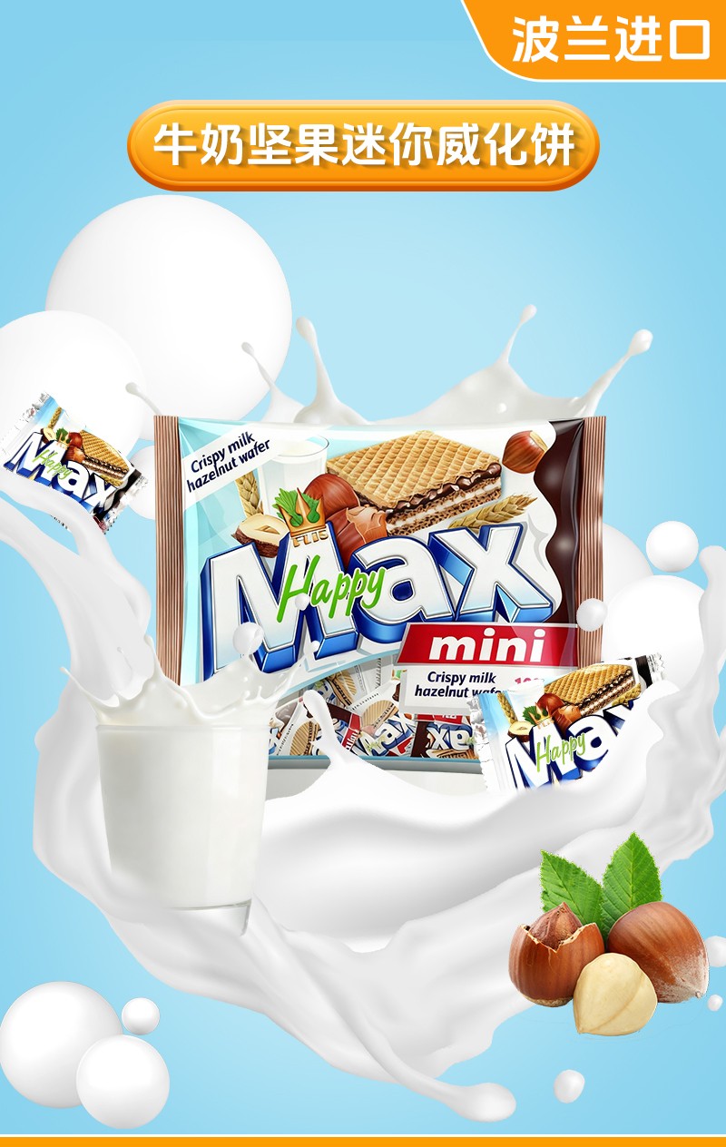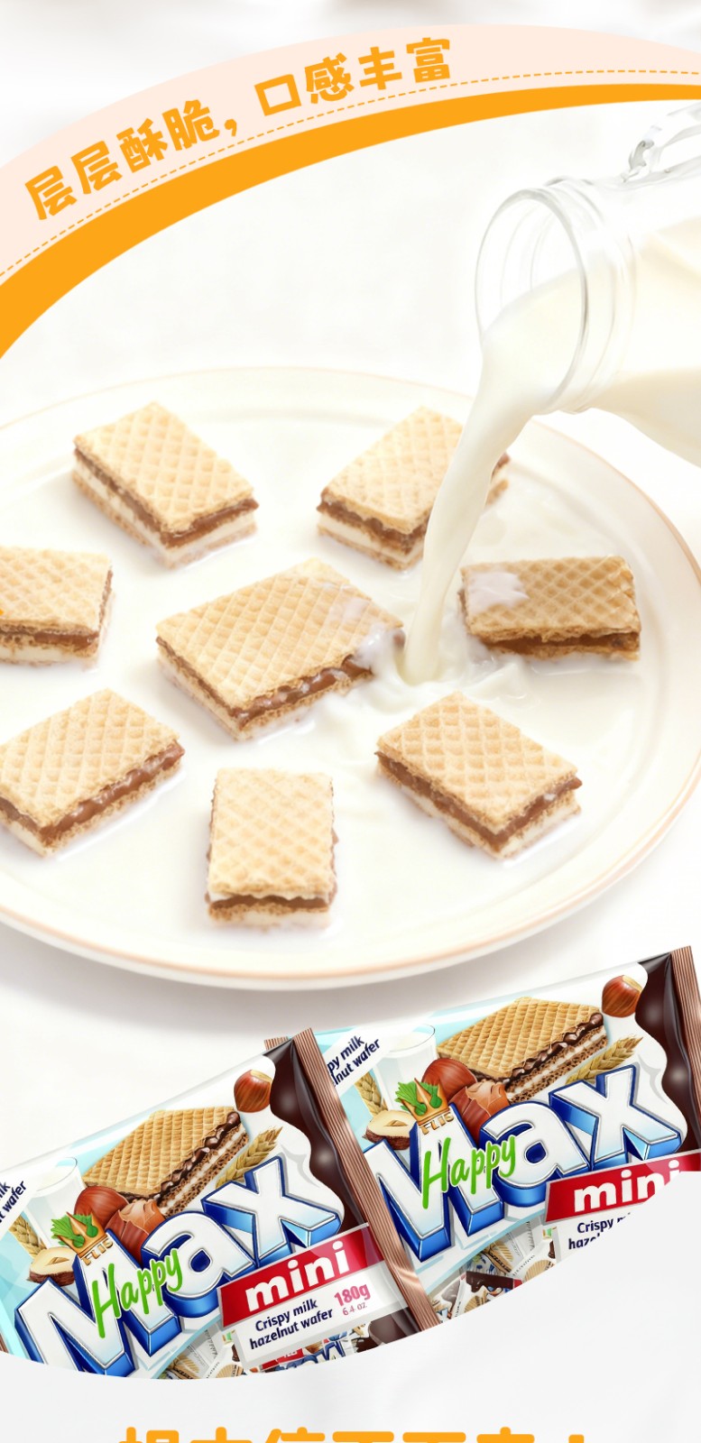 波兰进口FLIS牛奶坚果迷你威化饼榛子饼干 180g