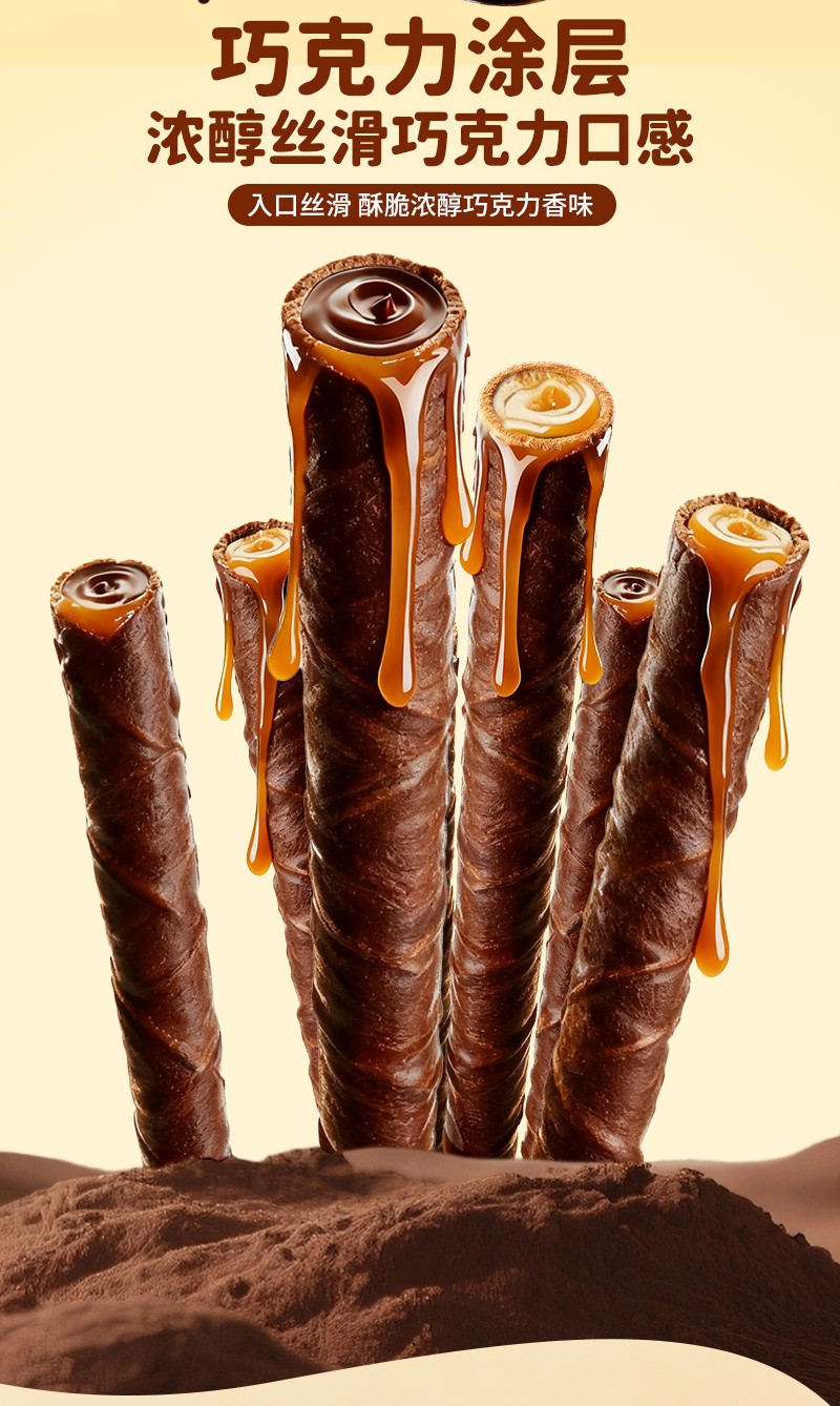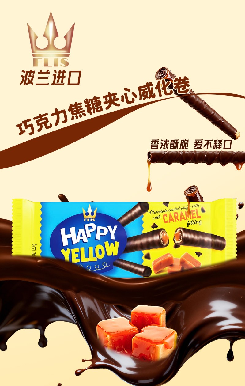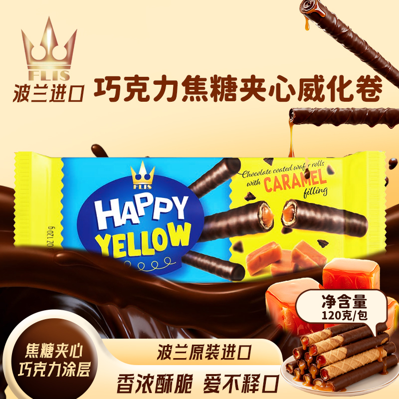 波兰进口FLIS巧克力焦糖夹心威化卷 120g