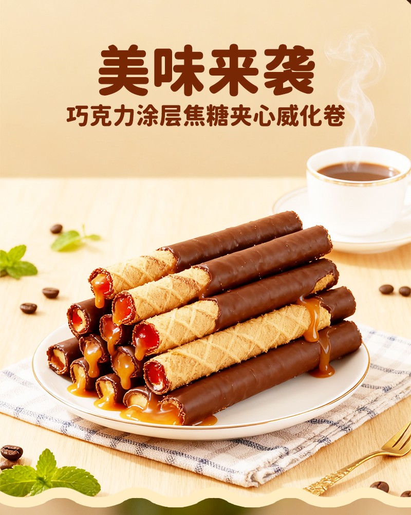 商品名称:波兰进口FLIS巧克力焦糖夹心威化卷 120g