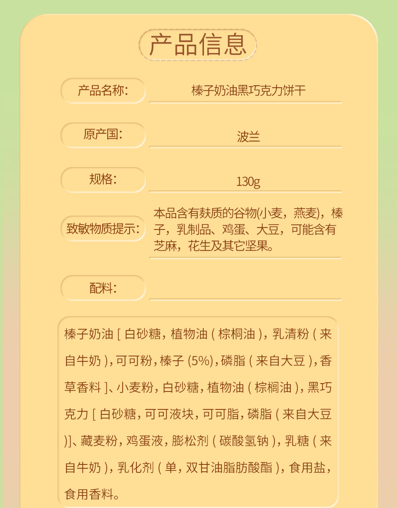 商品名称:波兰进口PRIMART榛子奶油黑巧克力饼干 130g