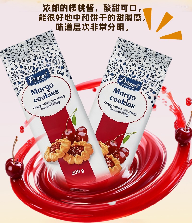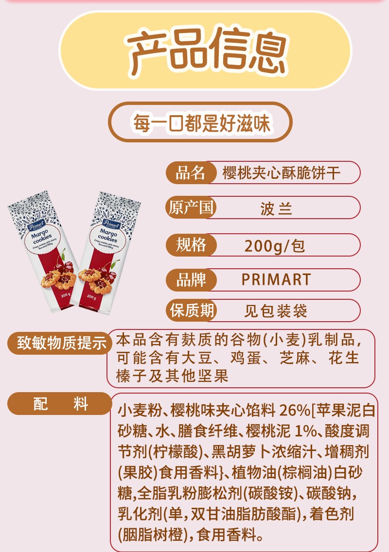 商品名称:波兰进口PRIMART樱桃夹心酥脆饼干 200g